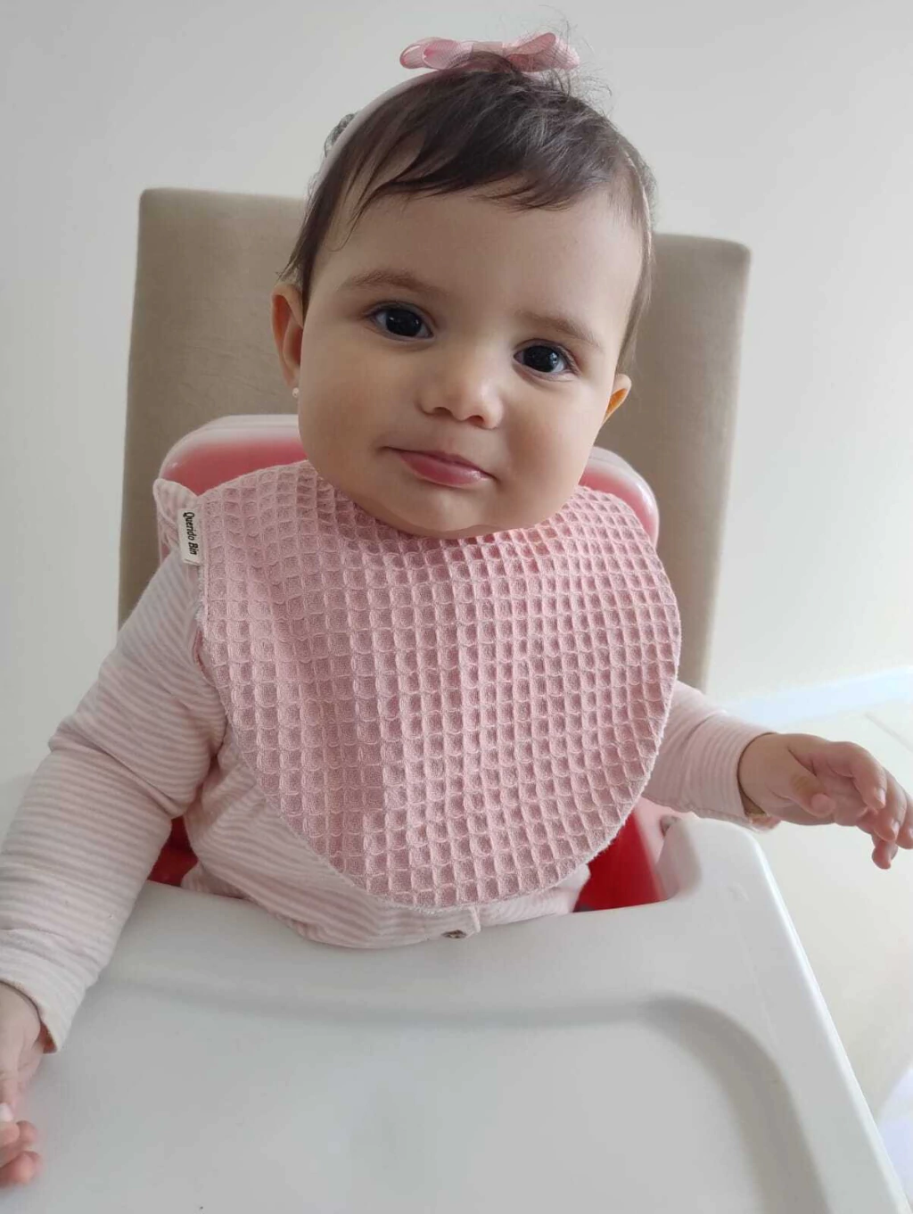 O Babador em tecido waffle foi pensado para unir beleza, funcionalidade e conforto na rotina do bebê. O waffle é um tecido especial 100% algodão, com textura suave e alta capacidade de absorção, ideal para acompanhar a fase da dentição, quando a salivação aumenta, e para garantir praticidade nos passeios e nas refeições.
